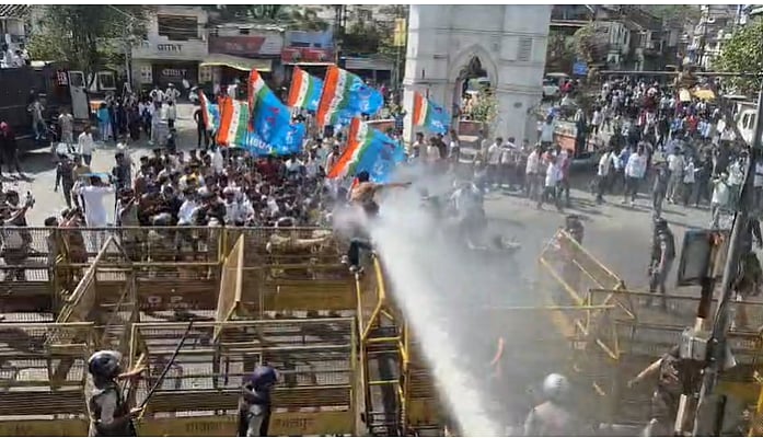 Around 2pm, a large group of activists began marching towards the Collectorate. When they reached near the Clock Tower, police set up barricades to stop them. The activists broke through the barricades and continued moving ahead, following which police used force to control the crowd.