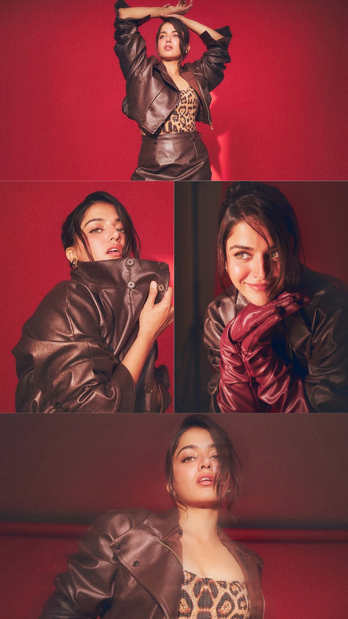 Wamiqa Gabbi is all set to kickstart promotions for her upcoming film Bhooth Bangla with fierce energy in this striking look.She dons a sleek leather jacket and matching leather skirt by Prashik Sukhnandan, creating a powerful, structured silhouette.Underneath, she layers a Sequined Jaguar bodysuit by Pink Porcupines, injecting a playful yet sultry animal-print twist into the ensemble.Her hair, styled in a soft updo with loose strands framing her face, adds a hint of effortless femininity to the otherwise bold look.Her vintage Art Deco black onyx earrings from Viange Vintage elevate the look with a touch of old-world glamour.The makeup leans towards soft glam with defined eyes and a natural lip, allowing the outfit to remain the focal point.